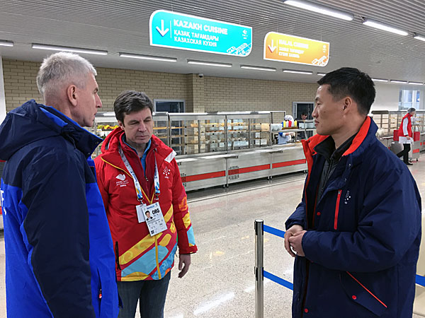 ALMATY – Shortly after his arrival in Almaty, FISU President Oleg Matytsin‘s went on an unofficial inspection visit to the Athletes’ Village. Accompanied by Sergey Buikevich, the OC representative in charge of the Village, and Jiho Kim, WU Executive Assistant at FISU, the President had a chance to ascertain that the Village is ready to host the national delegations. Mr Matytsin inspected the dining hall, the living rooms, equipment storage facilities, gym and other locations of the Village. A special attention was paid to the anti-doping and medical facilities. The visit also included the attendance of the museum and other leisure opportunities for student-athletes.