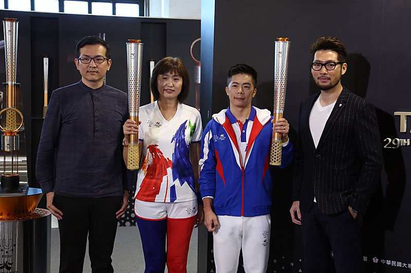 The torch and torchbearers’ uniforms were jointly unveiled by TUOC CEO Li-Chiung Su, Sports Administration of Ministry of Education Section Chief Maggie Hsu, Chinese Taipei University Sports Federation Deputy Secretary General Hong-Qi Li, and TUOC Cultural Division Director Li-Chu Li. Extreme adventurer Kevin Lin, who represented Taipei as a torchbearer in the 2015 Gwangju torch relay, and Huei-Chen Wang, Taipei’s first gold medalist at a Universiade, were invited to model the torchbearers’ clothes. Lin was full of praise for the torch design and said it was an honor to wear this uniform.