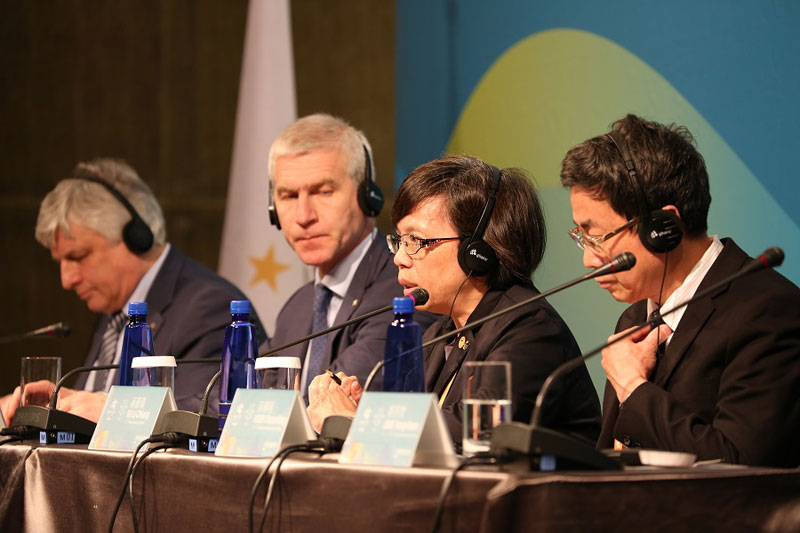 TAIPEY CITY – A press conference for the 2017 Taipei Summer Universiade Spring Heads of Delegation Meeting was held on the evening of May 11. FISU President Oleg Matytsin thanked the Taipei Universiade Organizing Committee (TUOC) for its all-round efforts and expressed the belief that all the heads of delegation in attendance are full of confidence about the coming Universiade. He said that the 29th Summer Universiade will be the biggest sporting event that Chinese Taipei has ever hosted and hoped that, on the Universiade stage, all the good things about Taipei will be seen by the world. He said the idea of Taipei City Government and FISU about the Universiade is the same: “Create a perfect stage for the students, they are the main players.”