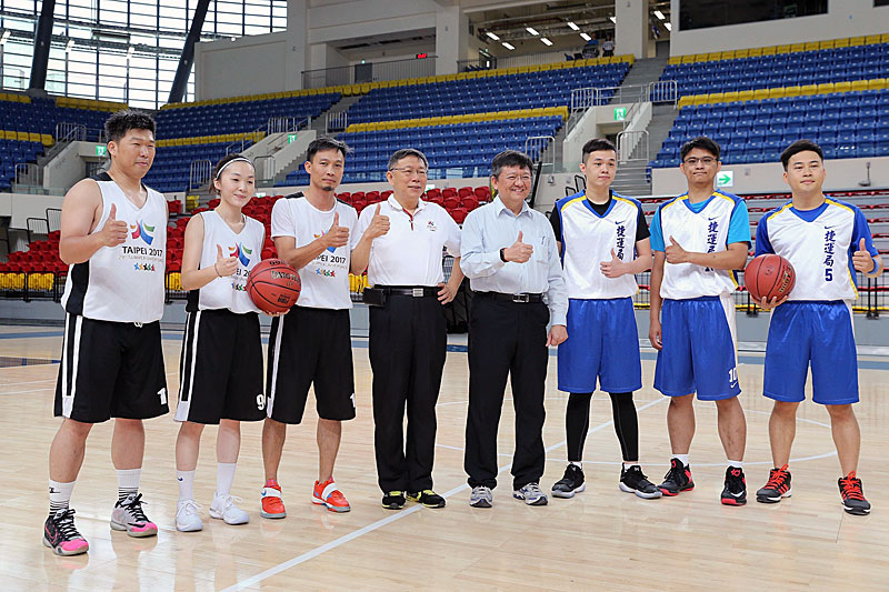 TAIPEI CITY – Construction of one of the new venues built for Taipei 2017 Universiade, Taipei Heping Basketball Gymnasium, has been completed. At 10am on 8 June. Taipei Mayor Wen-Je Ko paid a special observation visit to the Gymnasium and invited the Deputy Director General of the Ministry of Education Sports Administration, Zhe-Hong Lin and other guests from the world of sport to accompany him.