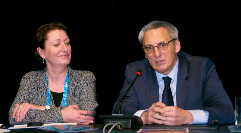 Media and Communication Chair Verena Burk shares the stage with FISU COO Dejan Susovic