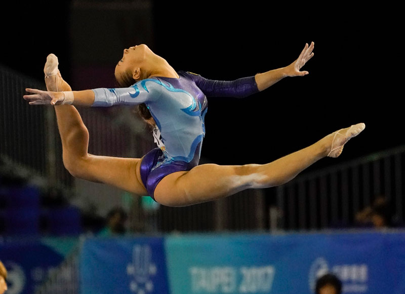 Yekaterina CHUIKINA (KAZ) on the floor routine of artistic gymnastics during Day 2 of the Summer Universiade. Rigorous testing is done at FISU events to protect the integrity of sport and clean athletes.