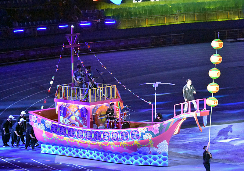 The evening started with several musical performances by Taipei performers. It was then followed by the parade of athletes, where hundreds of Universiade competitors donned their countries’ colours and strolled through the grounds of Taipei Stadium. “Over the past 12 days, we have witnessed the sweat of the athletes,” FISU President Oleg Matytsin said.