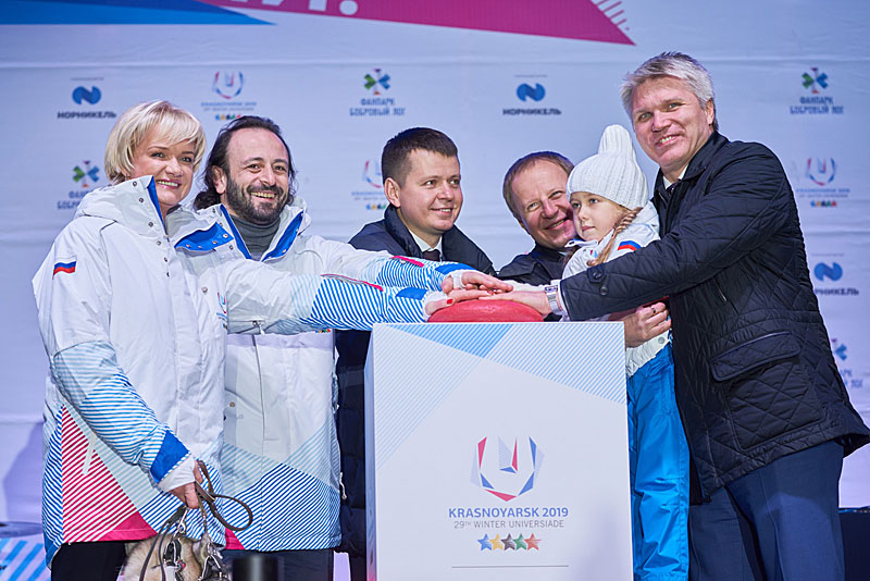 During the holiday, the countdown before the Student Games was solemnly launched with the participation of the Minister of Sport of the Russian Fedearion Pavel Kolobkov, acting chairman of the Krasnoyarsk Territory Government Viktor Tomenko, Director General of the Directorate of the Winter Universiade 2019 Maxim Urazov, Ambassadors of the Winter Universiade 2019: Svetlana Khorkina, Ilya Averbukh and Zlata Demyanova.
