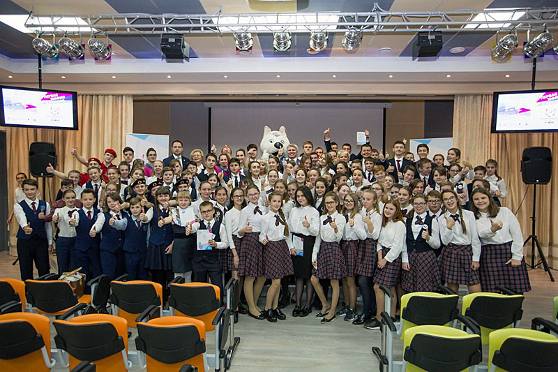During the lesson, over 200 students were able to get acquainted with the sports programme of the Games, as well as learn about the legends of Russian sports and the Winter Universiade 2019 Ambassadors. Pavel Kolobkov talked with students about the benefits of a healthy lifestyle, wished the children sports victories and success in their studies.