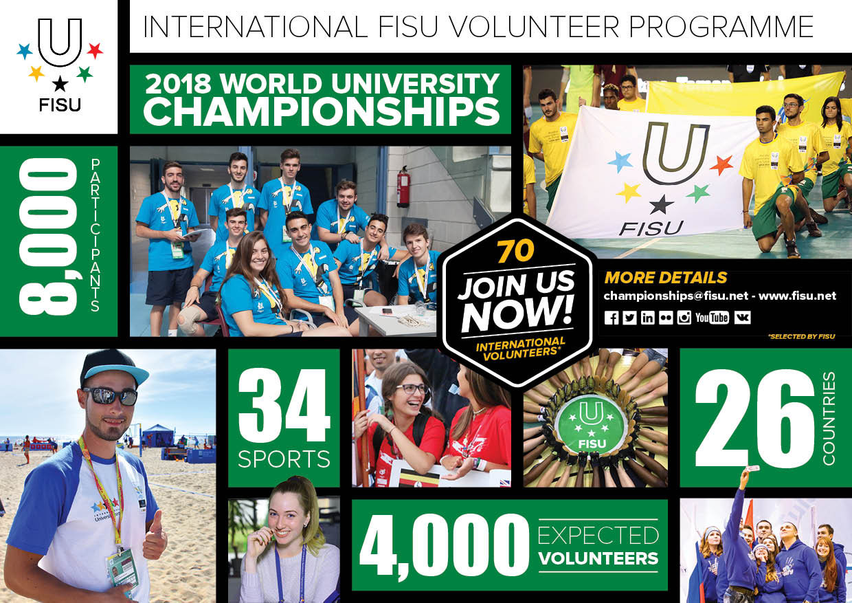 There’s still time to sign up for the International FISU Volunteers Programme. Those selected won’t be fetching coffee; you will hold a key position that ensures a successful the 2018 FISU World University Championship series event