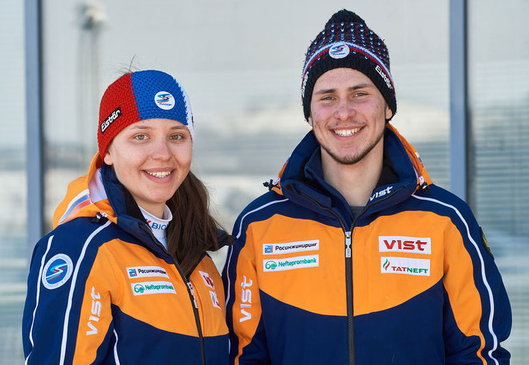 Downhill event Yulia Pleshkova and Alexey Konkov