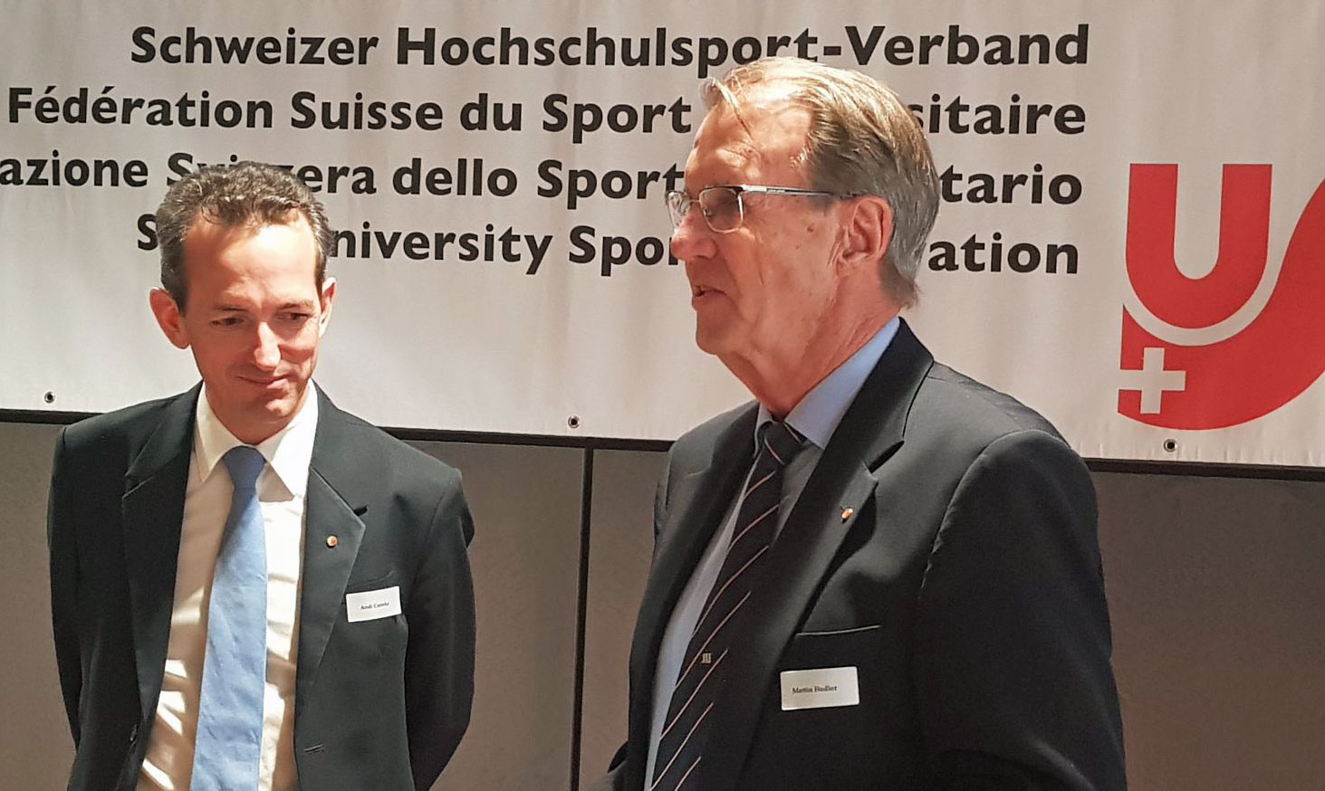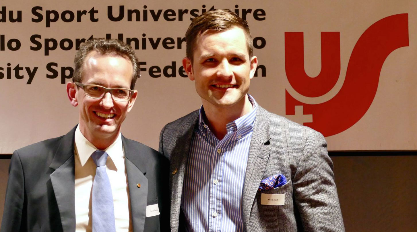 New Honorary Member Andreas Csonka (left) with the new President of Swiss University Sports, Mike Kurt