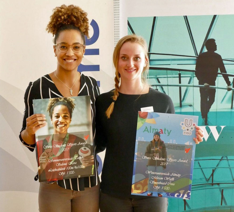 Athletics sprinter Salomé Kora of St. Gallen University of Teacher Education and snowboard cross rider Miriam Wuffli of ETH Zurich were also honoured with the Swiss Students Sports Award 2017