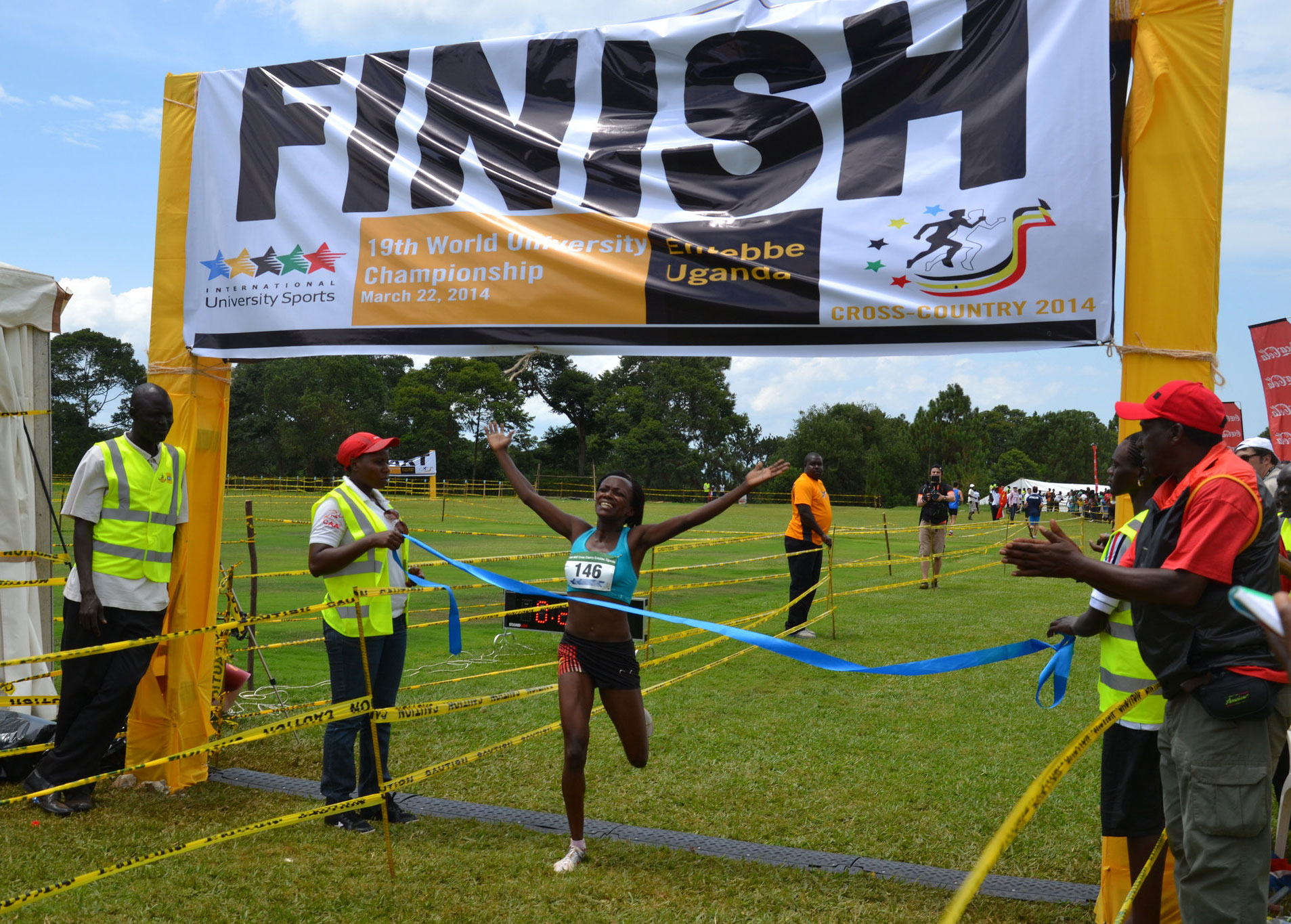 Winneie Nanyondo pocketing the gold at the 2014 World University Cross-Country Championship in a time of in 20:33.77 for the rugged 6km course
