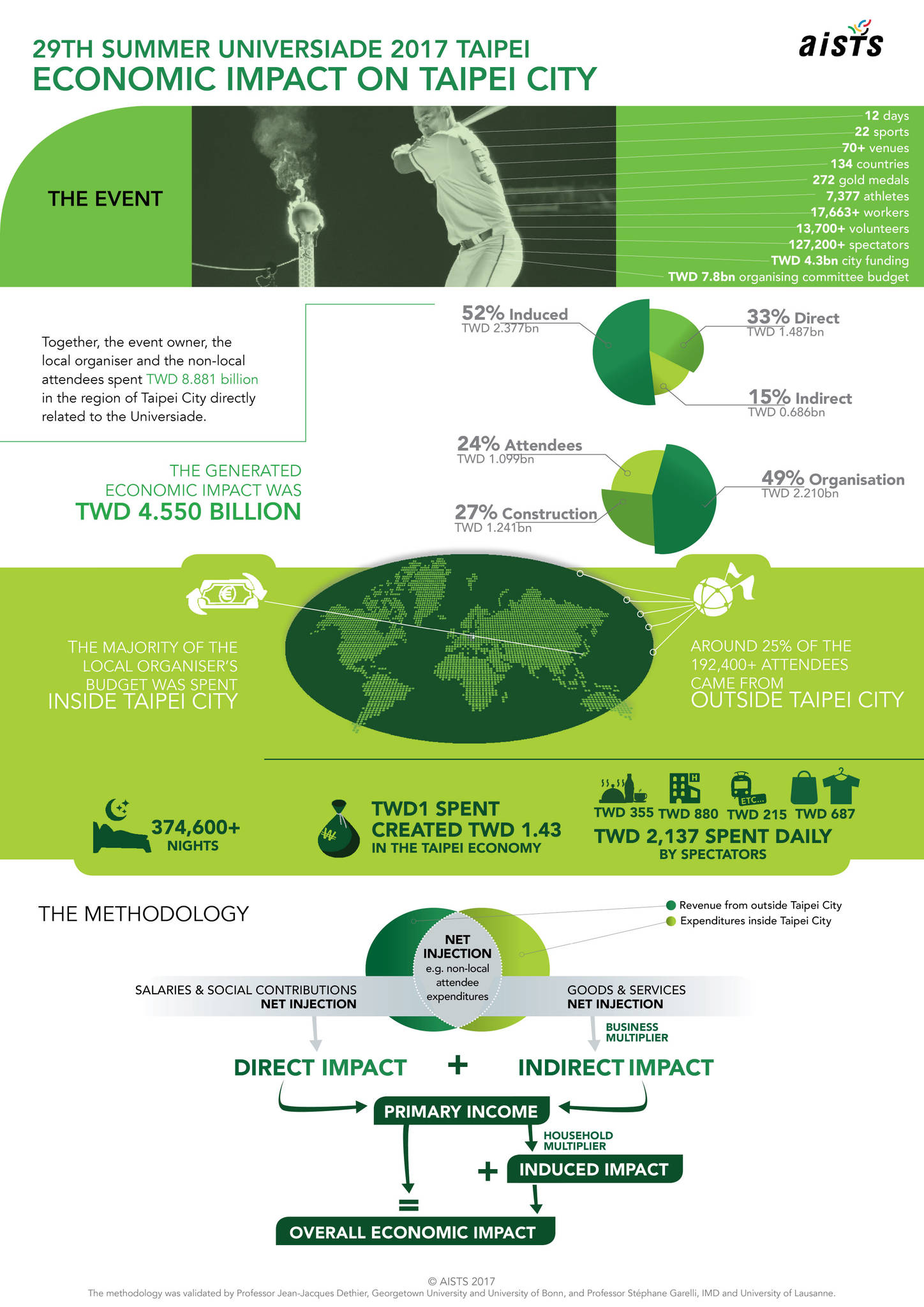 - The AISTS study was five-years in the making and demonstrates the strong economic impacts the regional benefited from hosting the event as Taipei 2017 reached millions.