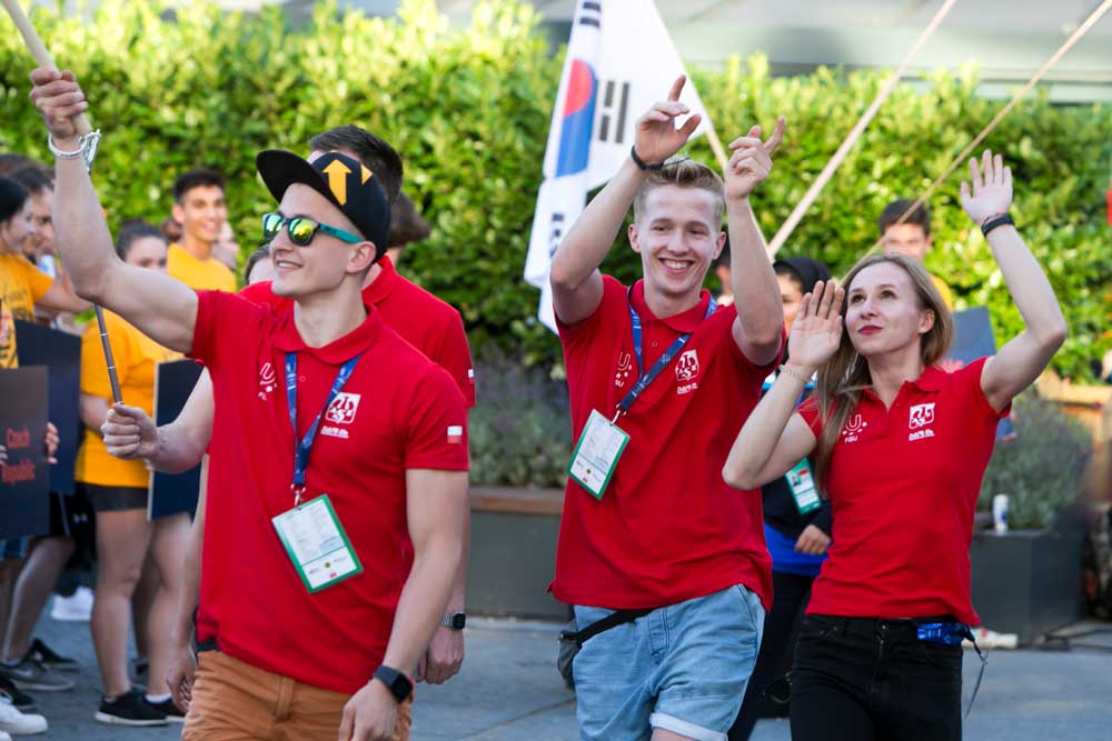 The Polish delegation walks into the competition arena during the opening ceremony of the FISU World University Sport Climbing Championship
