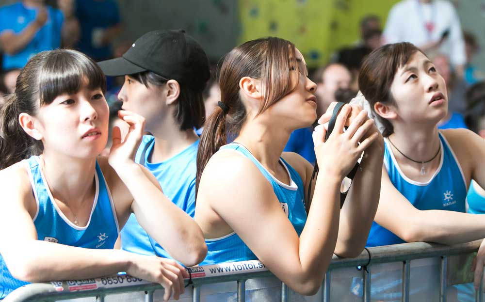 Competitors watching their country mate compete in the Bouldering Final on Friday