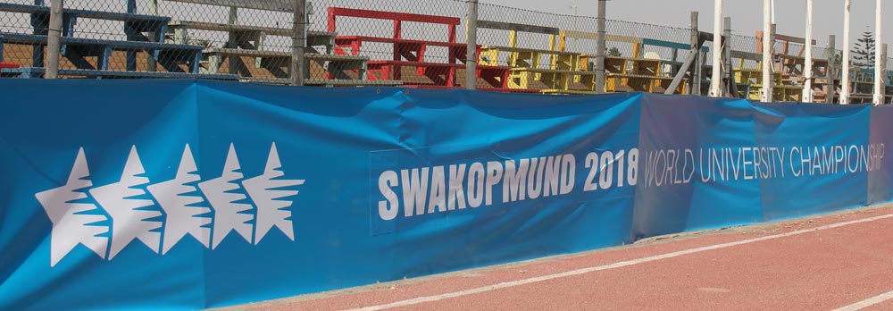 The FISU five stars are the first time the branding of an international sports organisation has had a prominent position on the Swakopmund Central Stadium, the host venue of this international event