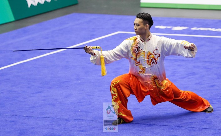 MACAO — Day 1 of the FISU World University Wushu Championship moved directly into dynamic action as the quarter finals of the Men’s 70-kg and 80-kg Sanda competition were held. The literal meaning of ‘Sanda’ is free hand and the event showcases a traditional form of Chinese kickboxing.