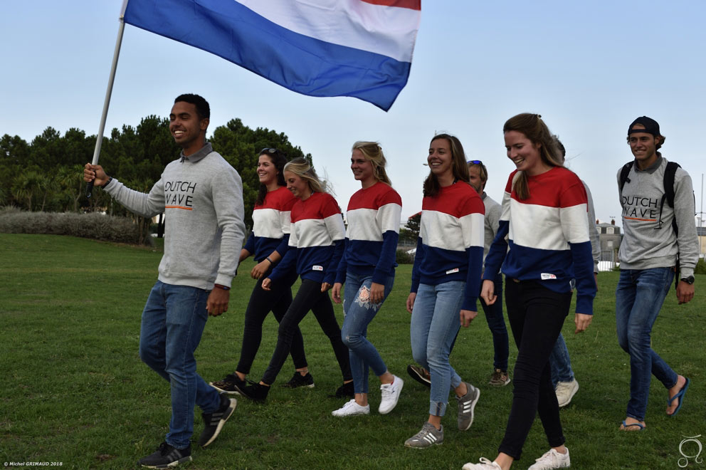 CHERBOURG, FRANCE – Under a radiant Friday night sunset on “the Green Beach” of Cherbourg-en-Cotentin, the opening ceremony of the 2018 World University Sailing Championship heralded in the event’s third consecutive edition. The lively ceremony was marked by the presence of an unexpected and distinguished guest.