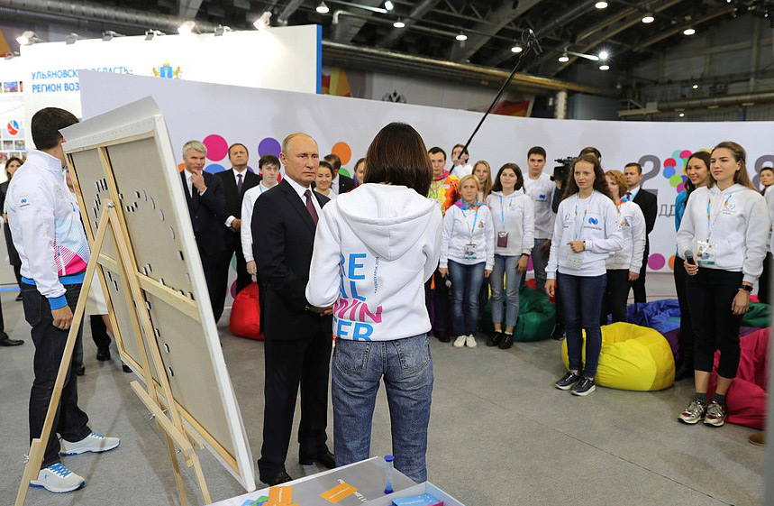 Vladimir Putin, the President of the Russian Federation met with the Krasnoyarsk 2019 Winter Universiade volunteers in the city of Ulyanovsk, where he took part in a volunteer training session.