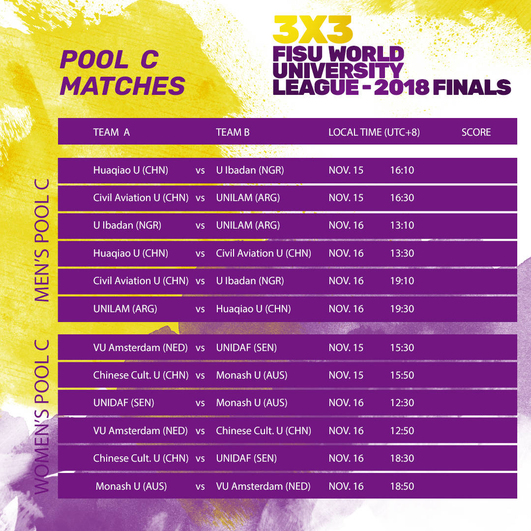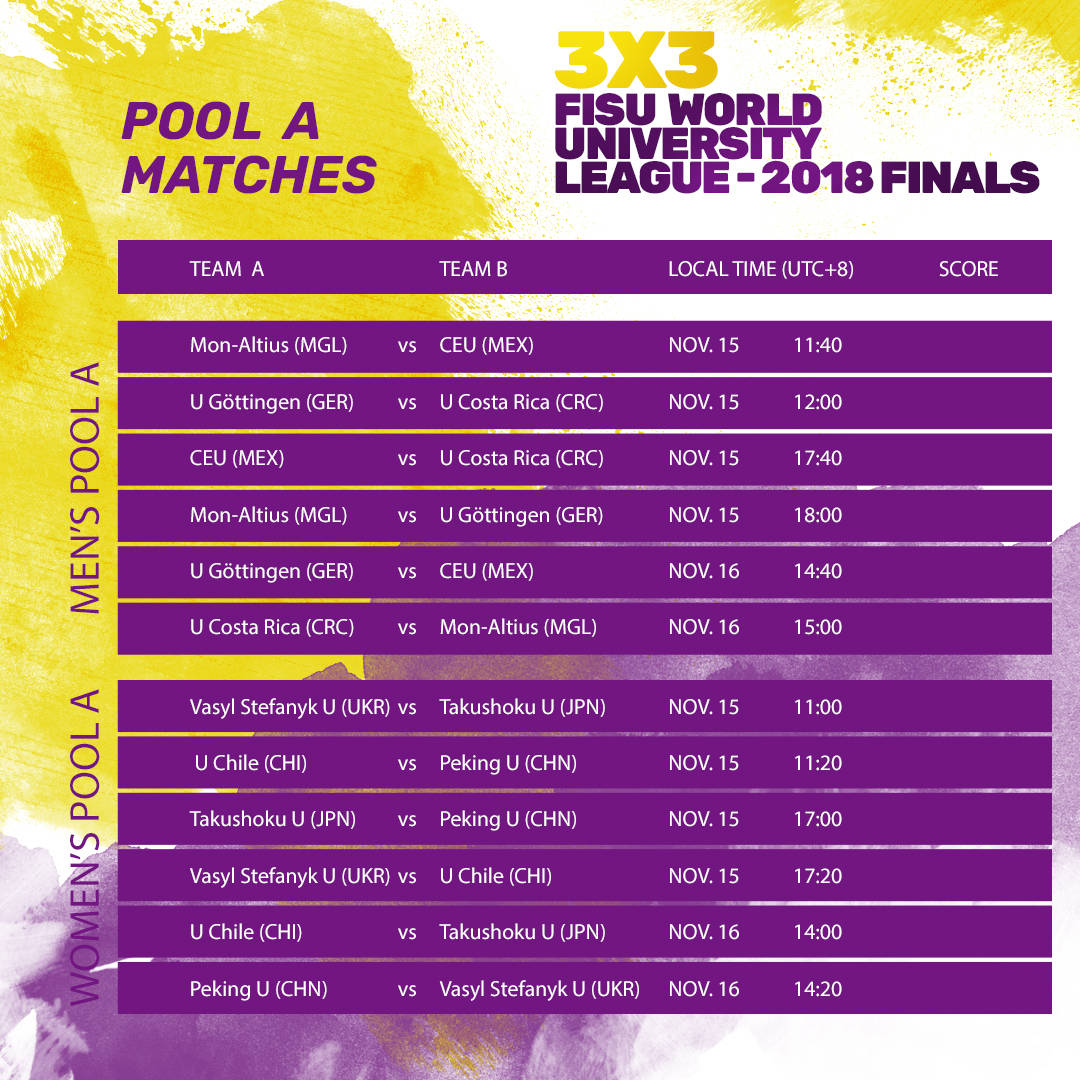XIAMEN – It is the only global tournament that brings the world’s best 3×3 university teams together on one court and it gets underway on Thursday, 15 November. After months of intense competition and continental qualifiers that ran through the year, the top 3×3 Basketball teams from around the world have come together in Xiamen, People’s Republic of China, for the fourth edition of the FISU 3×3 World University League Finals.