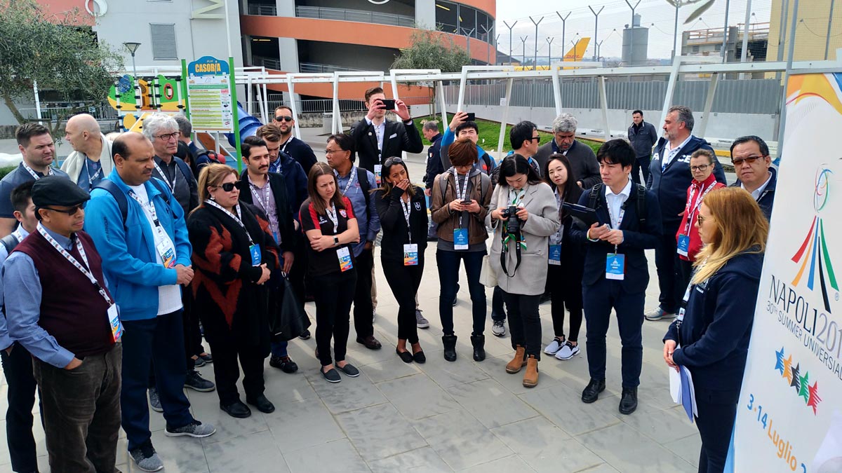 NAPOLI, 3 April – The litmus test ahead of the Napoli 2019 Summer Universiade took place as the Heads of Delegations (HOD) from about 50 countries visited various sport competition venues over two days, from 2-3 April. The 30thedition of the Summer Universiade will take place from 3-14 July and with less than 100 days left before the event starts, the national delegation representatives are meeting in Napoli to make an assessment of the level of preparations and plan ahead for the arrival of their delegations in late June.