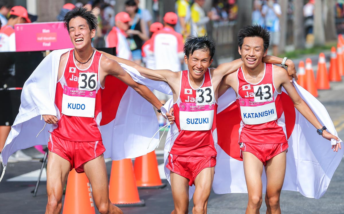Comradery and cohesion amongst teammates is a hallmark of long distance runners, as evidenced by Team Japan at the conclusion of the Taipei 2017 Summer Universiade half marathon