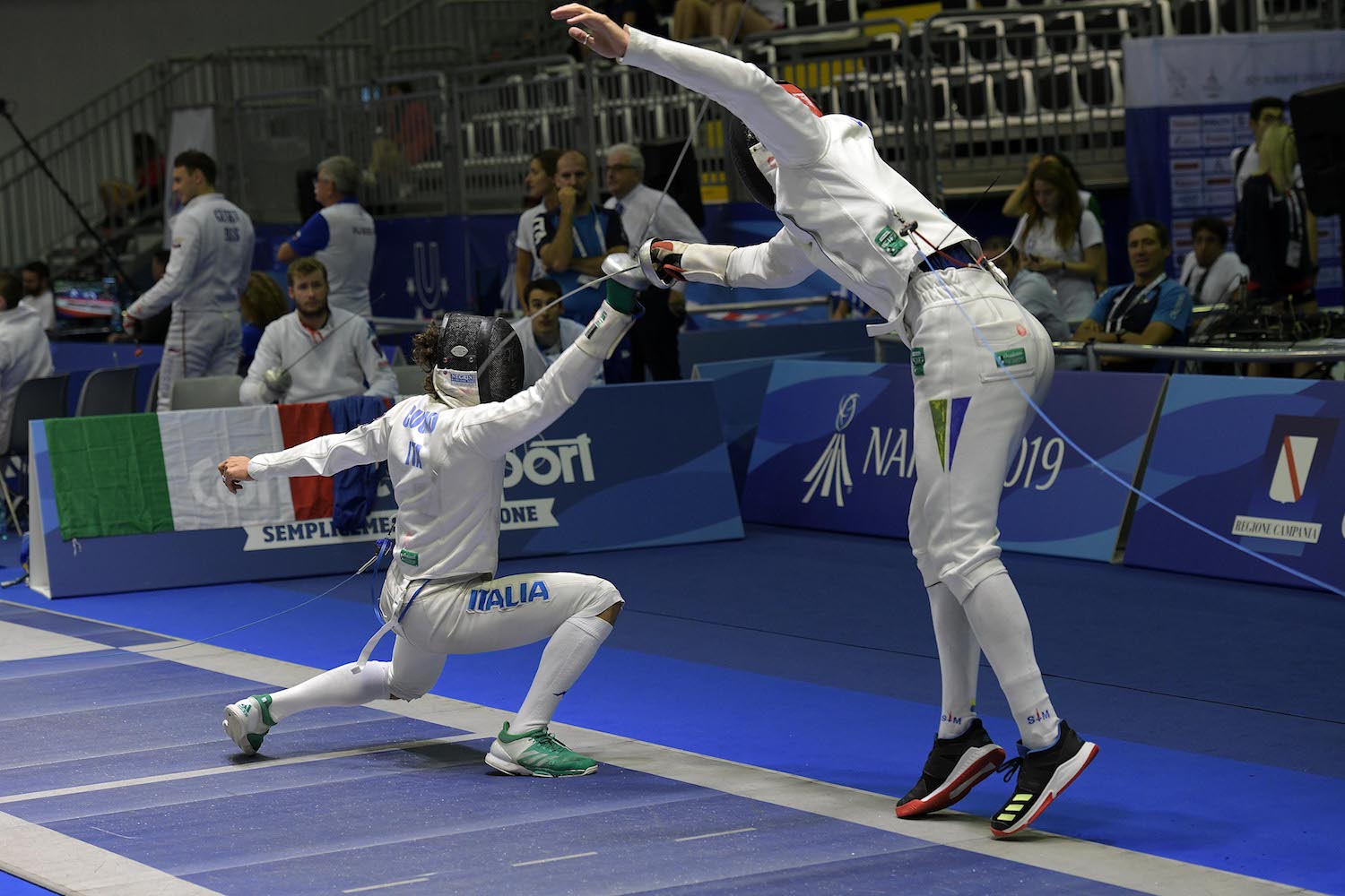 NAPOLI, 9 July – Chants of “Italia, Italia” were heard all the way to downtown Naples on Tuesday evening as host Italy swept the last two finals of the Universiade fencing competition at Centro Universitario Sportivo Salerno, about an hour outside the regional capital of Campania.