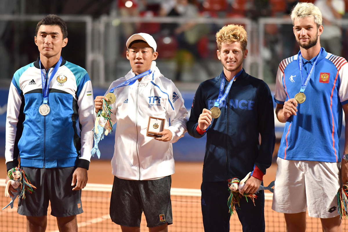 Men’s singles medalists from the 30th Summer Universiade, which took place on the final day of tennis competition at the Old Napoli Tennis Club