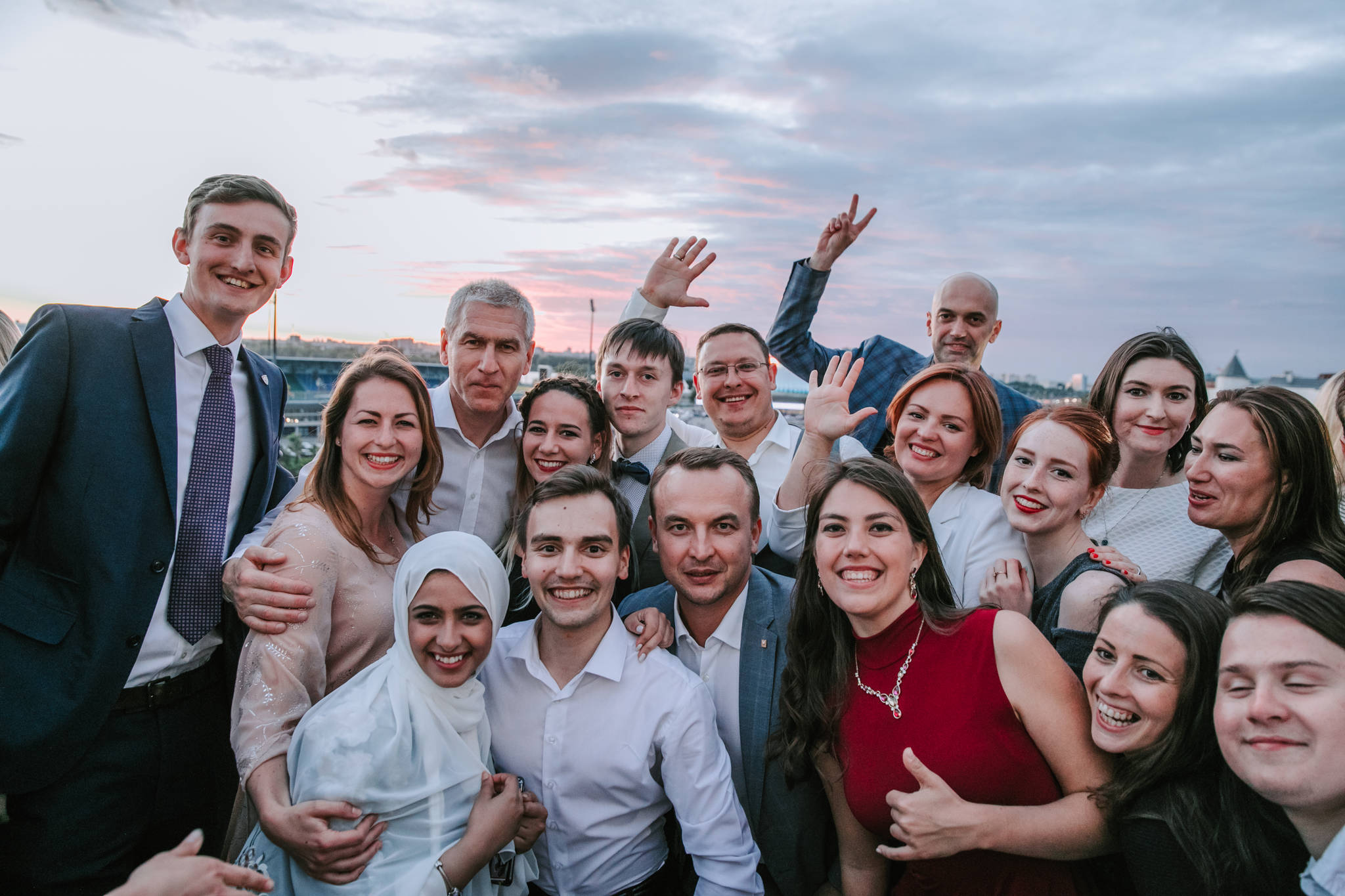 Adam Pratchett (far left) with the 2018 FISU Volunteer Leaders Academy crew in Kazan