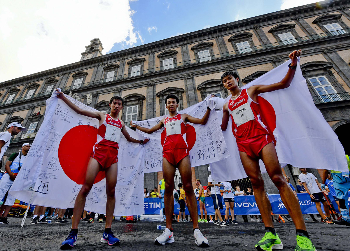 The Japanese men ran a scintillating half marathon along the streets and oceanfront promenade of Napoli to take the individual and team titles at the 30th Summer Universiade for the second event edition in a row