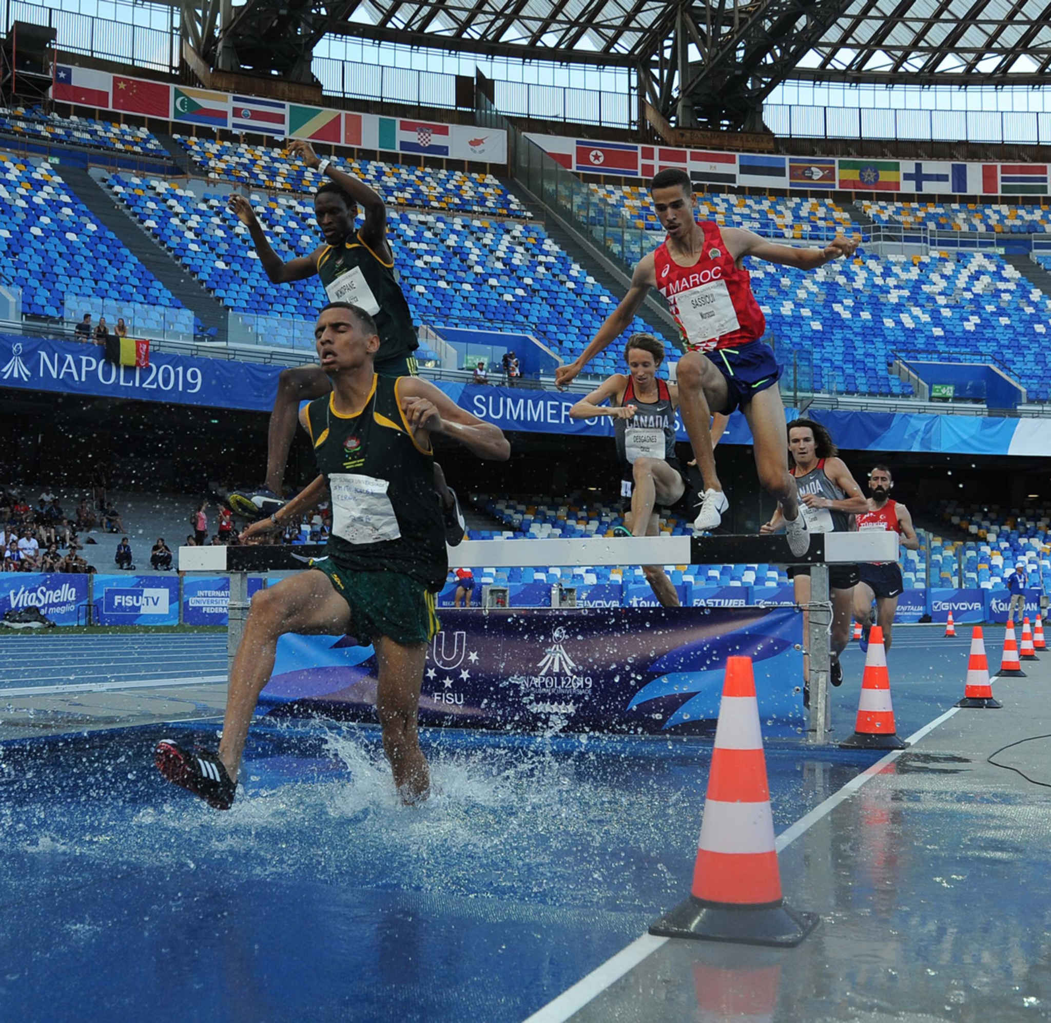 All his perseverance and dedication paid off following his selection into South Africa’s athletics squad for the 2019 FISU Summer Universiade in Napoli which culminated in the highlight of his young career so far: a third-place finish and bronze medal in the 3000m Steeplechase, where he joined silver-medallist and compatriot Rantso Mokopane on the podium in Napoli.