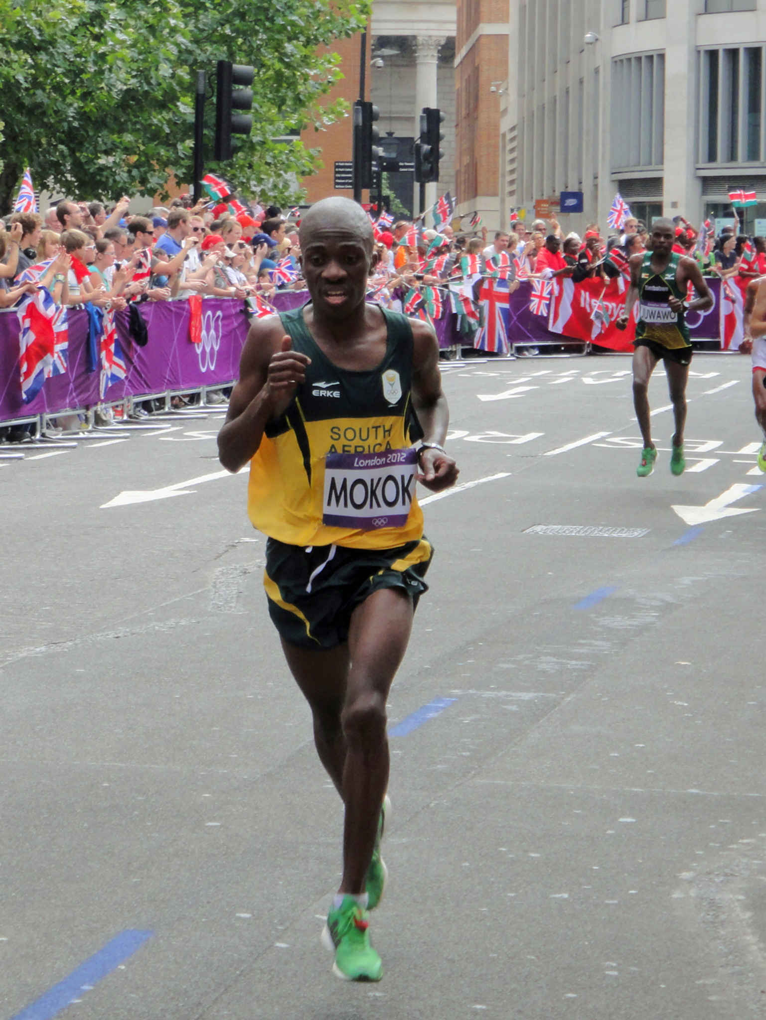 Stephen Mokoka in action during the London 2012 Summer Olympics marathon en route to 49th place in a time of 2:19:52.