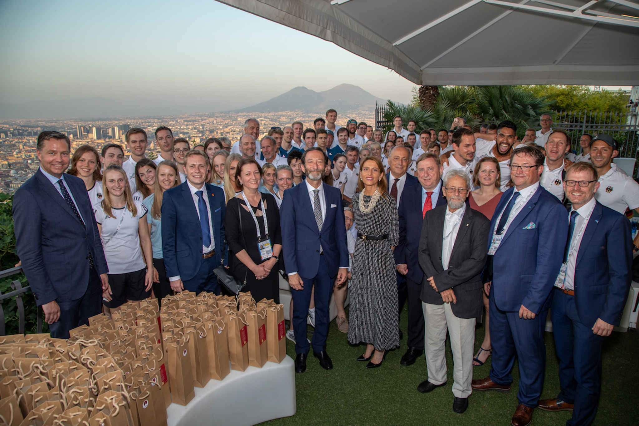 German University Sport Federation (adh) officials, sports management professionals and supporters of collegiate sports get together during the Napoli 2019 Summer Universiade for a reception in honour of the competing student-athletes