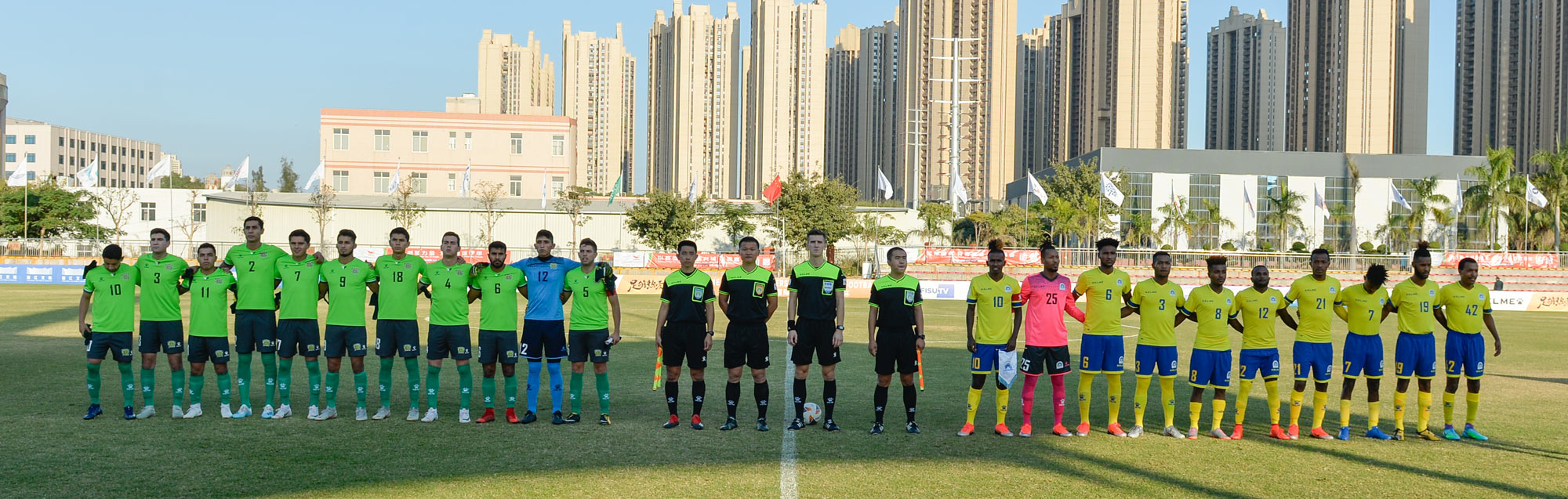 The Autonomous University of Mexico State and Kotebe Metropolitian University pose for the customary photo with the match officials on the downtown Quanzhou College of Technology Stadium. Watching two university teams walk out to the playing pitch one after another is a tradition that never gets old.