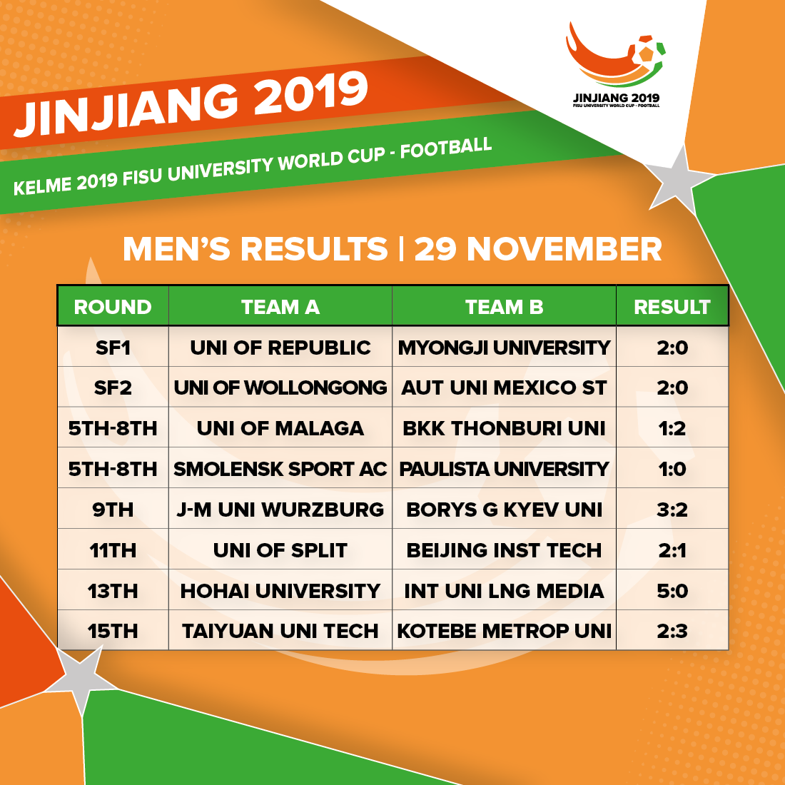 After 10 days of constant competition, the men’s final at the inaugural KELME 2019 FISU University World Cup – Football is set with University of Wollongong taking on the University of the Republic. Here’s how the teams advanced from the semifinals for their chance at the cup.
