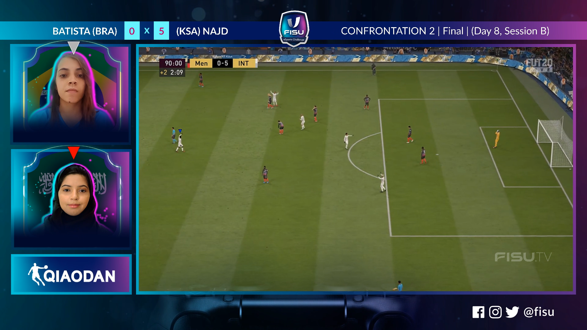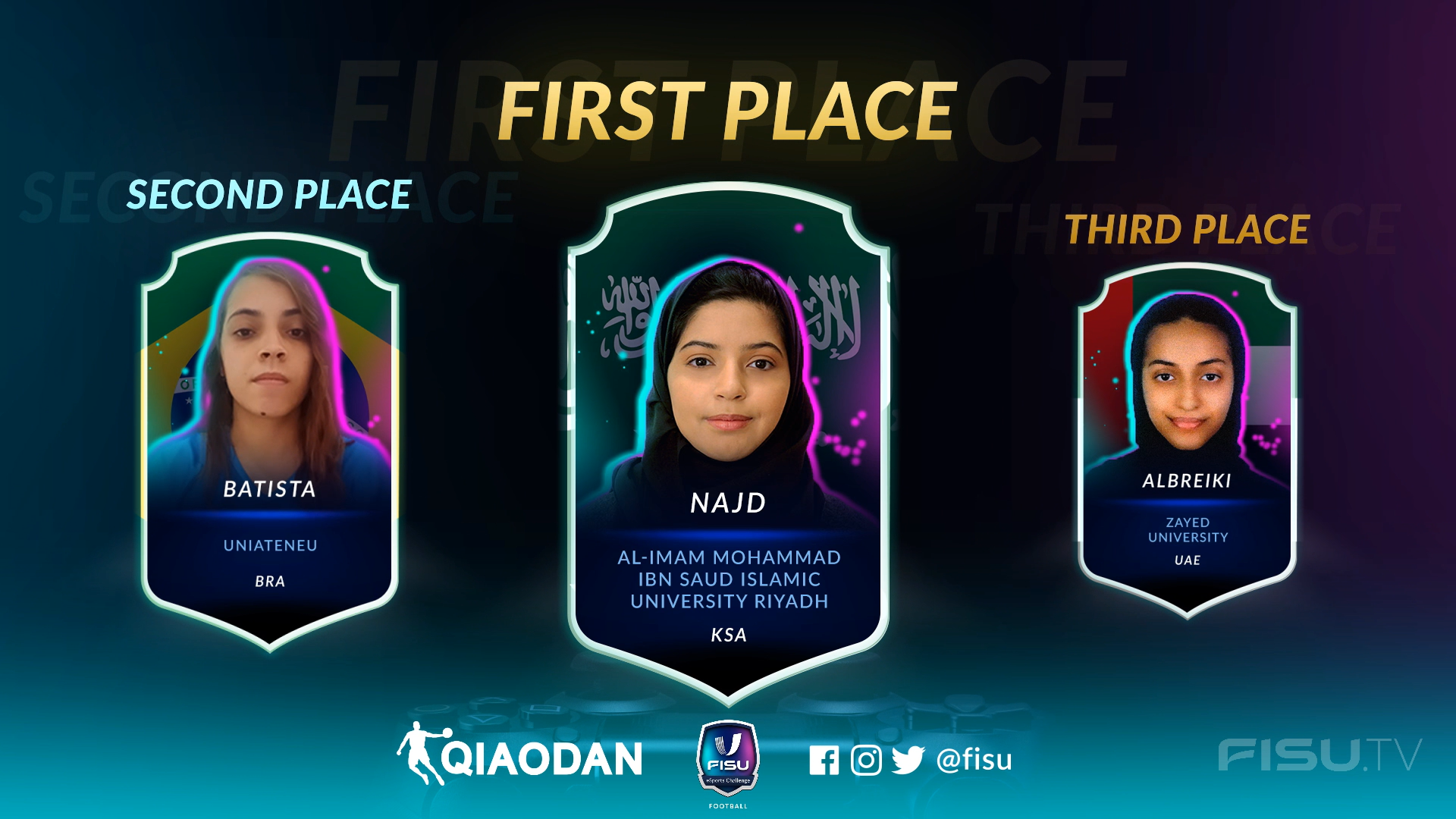 Najd in the women’s final of the 2020 FISU eSports Challenge FootballIn the women’s grand finale, Saudi Arabia’s Najd Fahad from Mohammad Ibn Saud Islamic University battled it out against Brazil’s Alexssandra Batista from UniAteneu.