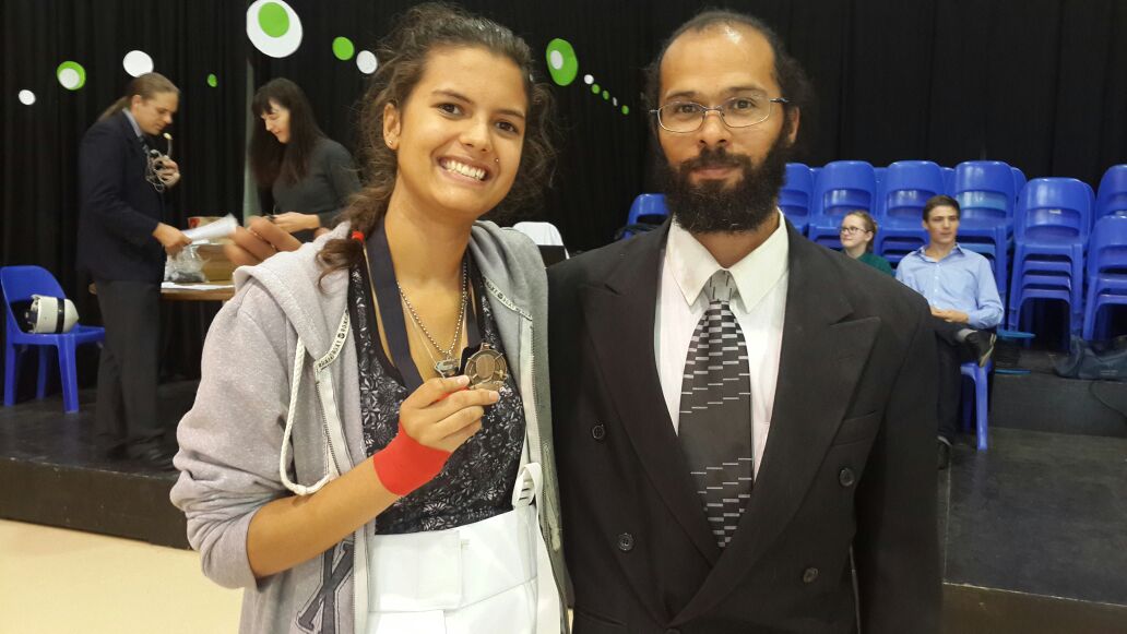The dedicated fencer is a firm believer in a dual career, balancing her demanding academic workload with her sports training, which simultaneously acts as a much-needed stress-reliever.Akira Coetzee and her coach Marius Titus