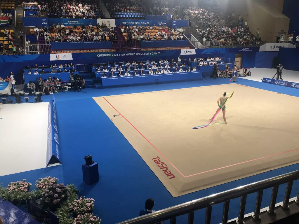 It is very rare in the life of international elite athletes to compete on their training ground, in front of friends, family and loved ones. This is nevertheless what happened to the Chinese team in rhythmic gymnastics, which dominated the Chengdu FISU Games team all-around event on Sunday at Chengdu Sport University Gymnasium.