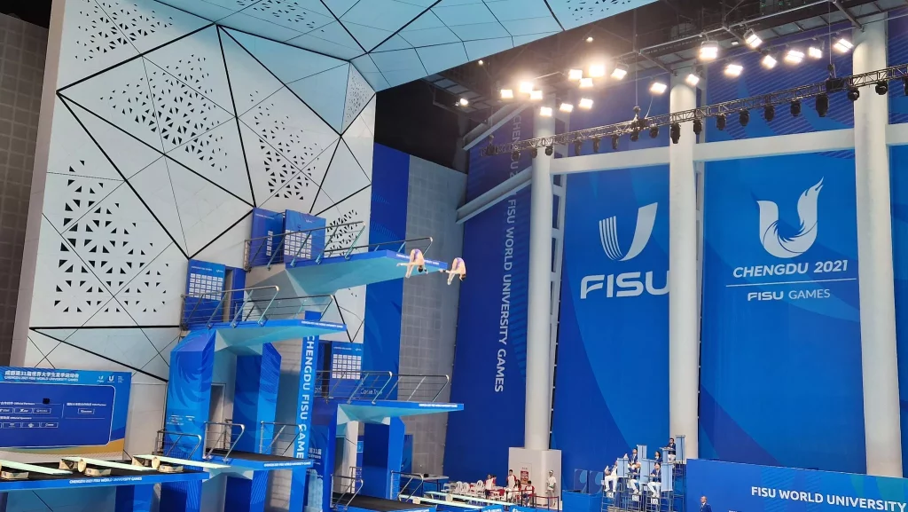 China would have been the natural favourite for gold at women’s synchronized 10m platform event on Monday at the Chengdu FISU World University Games, but at the start of the final the American team made it even easier for the local team, by not competing. Eventually only two pairs – China and Republic of Korea – participated at the event.