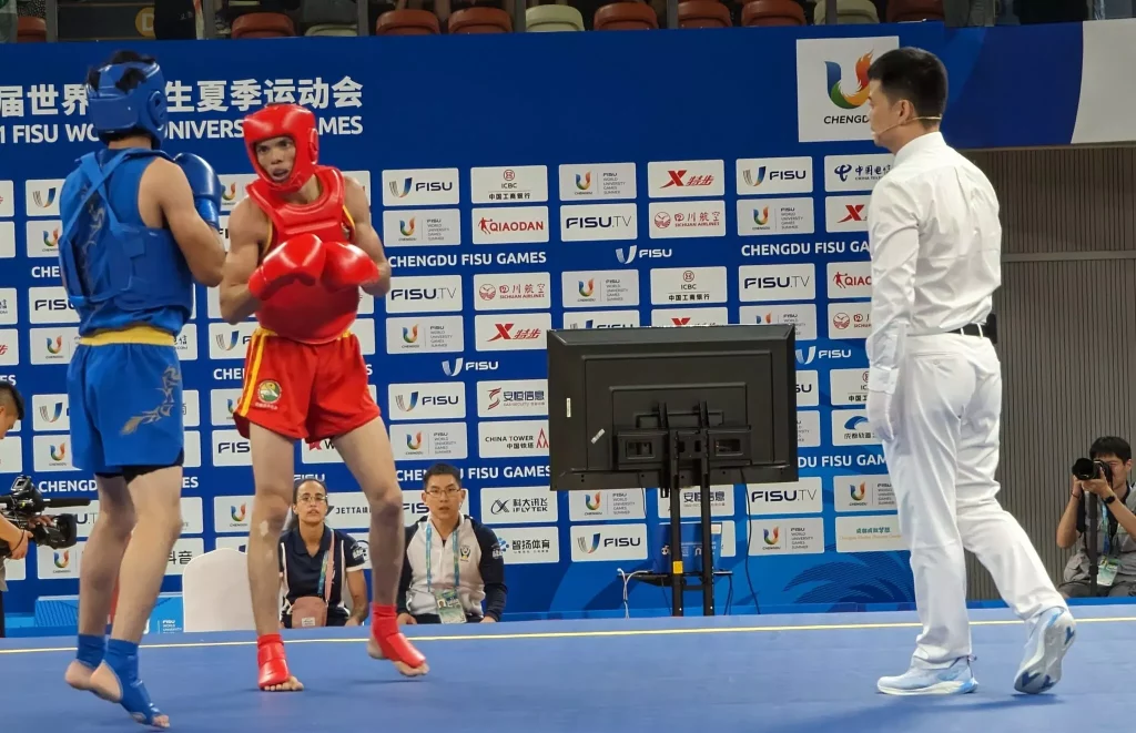 “I’ve been involved with wushu for as long as I can remember,” said Gabriel Pedroso de Almeida, who takes part in Sanda, the fiercest variant of wushu where every form of contact counts towards the score. He fought in men’s 60kg at the Chengdu FISU Summer Games and fell in love with the sport because his father was also a fighter.