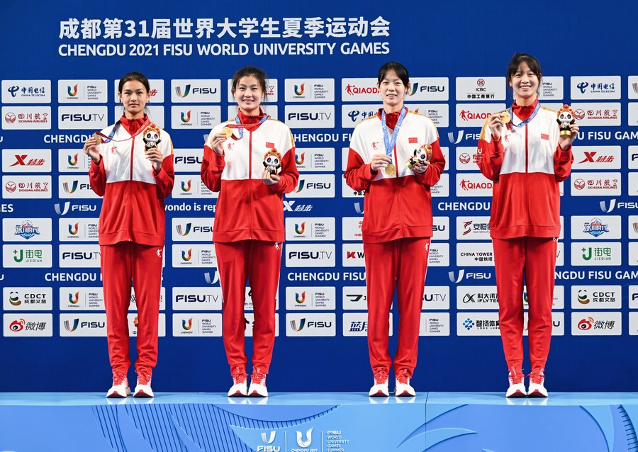‘Jiayou’ cheers were constant as the Chinese teams were introduced at the Wangjiang Campus Gymnasium during the last day of taekwondo at the Chengdu FISU World University Games.