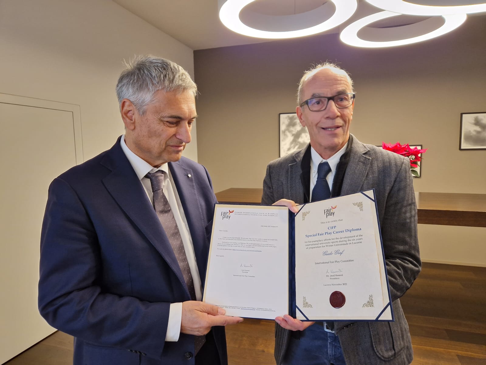 President of the Organising Committee of Lucerne 2021 Winter Universiade receives fair play award