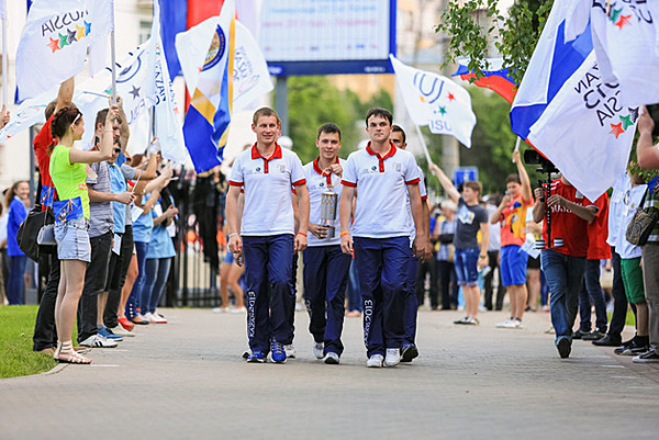 Crowds turn out to cheer Universiade Flame in Vladimir
